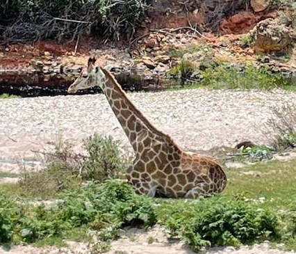 Die Tour war abwechslungs- und lehrreich und die 3 Stunden vergingen wie im Flug. Gleich zu Beginn trafen wir auf ein Breitmaulnashorn (White Rhino), das sich vom Spitzmaulnashorn (Black Rhino) im Wesentlichen darin unterscheidet, dass es Gräser frisst, letzteres frisst Blätter. Wenig später hatten wir dann das Glück zwei Geparden zu sehen, die, gut getarnt, im Gebüsch dösten. Verschiedene Antilopenarten wie Springbok, Bondibok oder Waterbok konnten wir auch beobachten. Und wir begegneten dem Nationalvogel Südafrikas, dem Paradieskranich (Blue Crane). Unser Guide Simba erzählte uns z.B. dass Zebras sich bei Angriffen durch Feinde zu einer geschlossenen Herde formieren. Durch die ihre Streifen können die Fressfeinde, wie z.B. Löwen nur schwer ausmachen, wie viele Tiere sich in der Herde befinden. Bei jungen Zebras wachsen die Beine innerhalb von ein paar Wochen so schnell, dass sie die gleiche Höhe haben, wie die Beine von erwachsenen Zebras. Damit können Angreifer in einer Herde die Jungtiere nicht von den Erwachsenen unterscheiden. Zum Abschluss unserer Tour begegneten wir noch 2 Giraffen sowie einer kleinen Gruppe Elefanten. Es gibt 2 Arten von Elefanten: Den afrikanischen und den asiatischen. Als ich fälschlicherweise vom „indischen“ Elefanten gesprochen hatte, wurde ich von Simba mit einem Lächeln korrigiert.